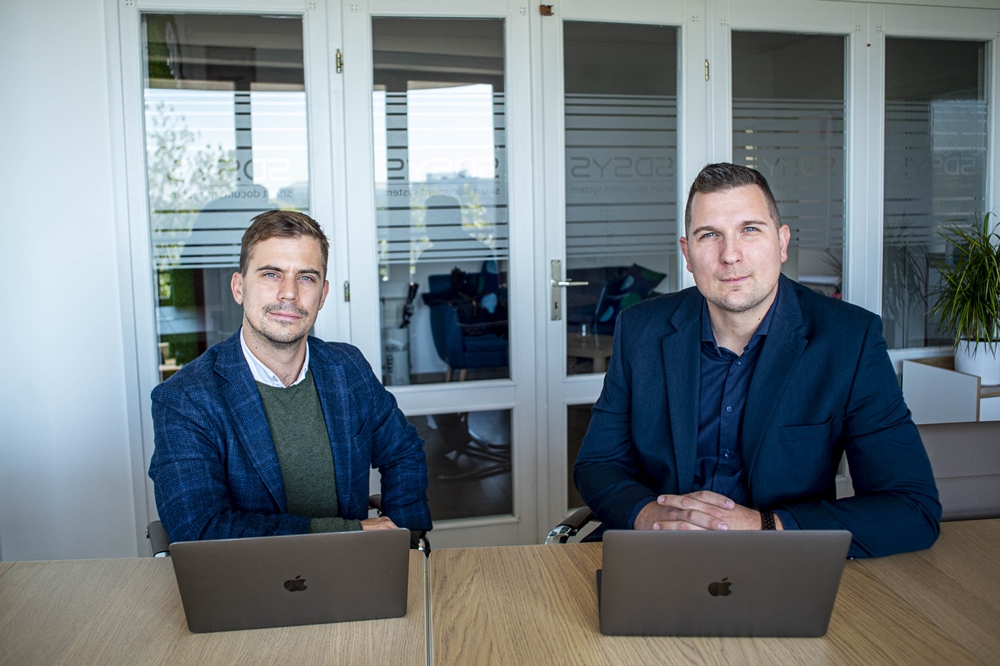 A fotón dr. Romhány Gergely, a TrustChain Systems Kft. ügyvezetője és Poór Károly, az SDSYS Zrt. cégvezetője.